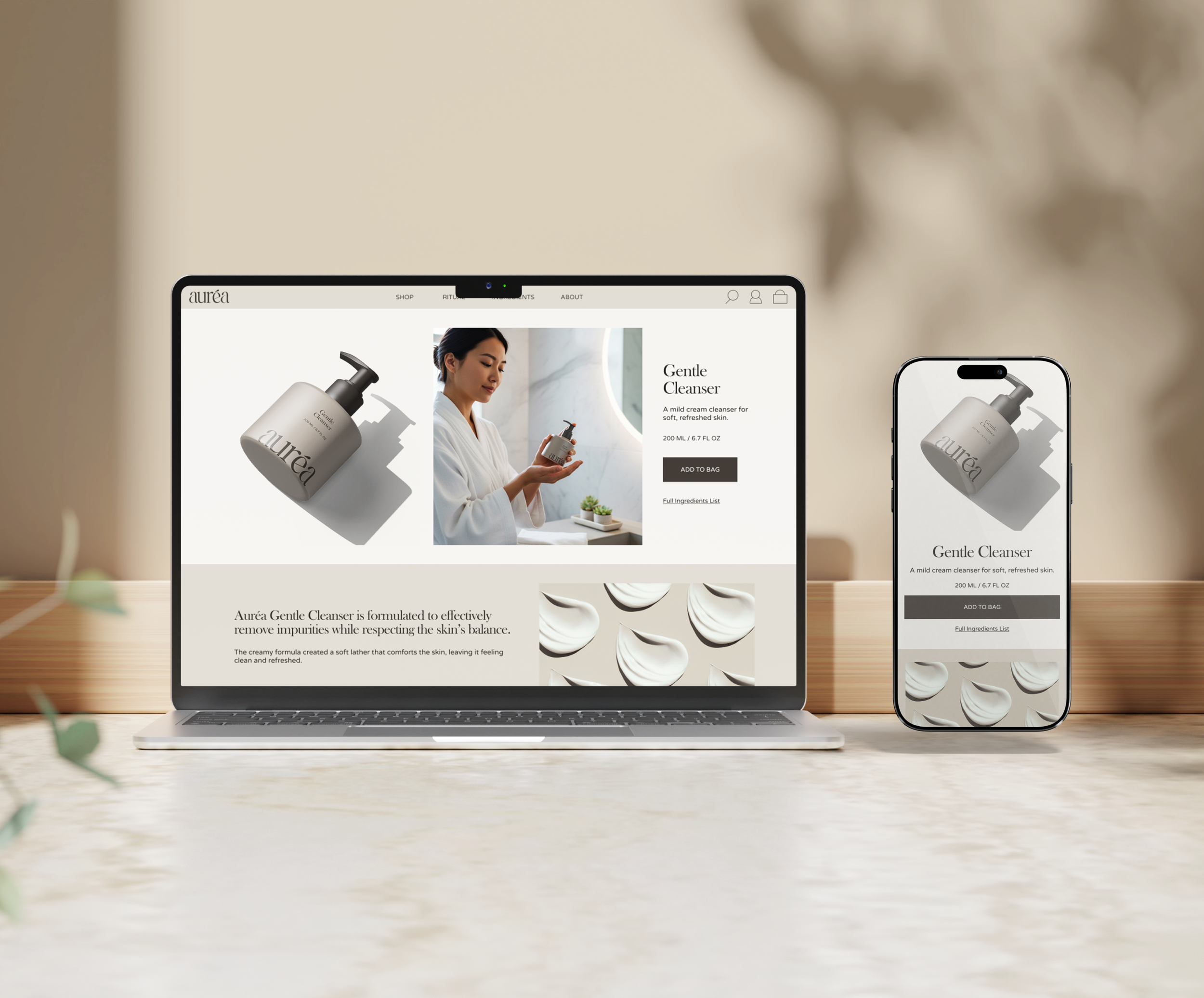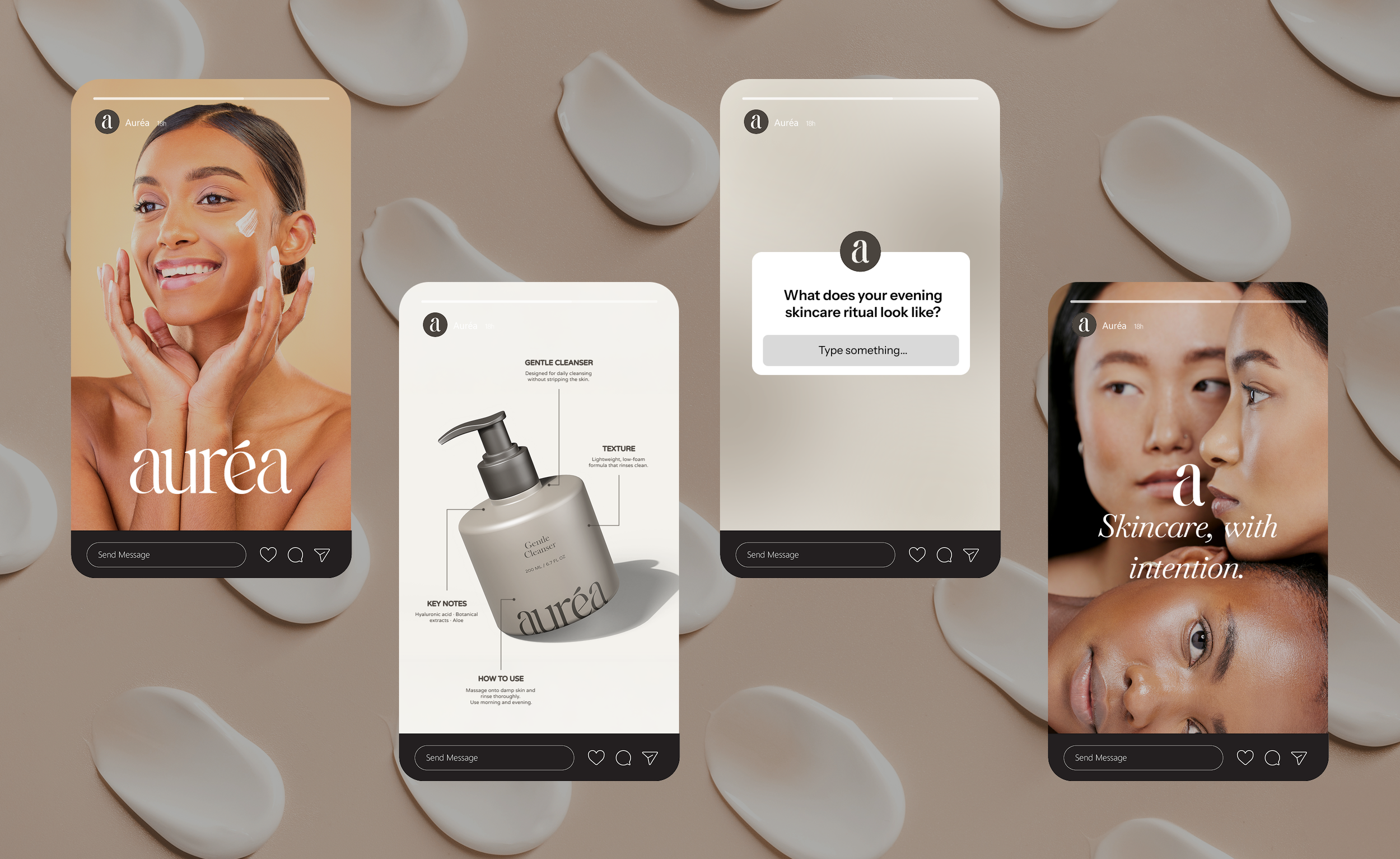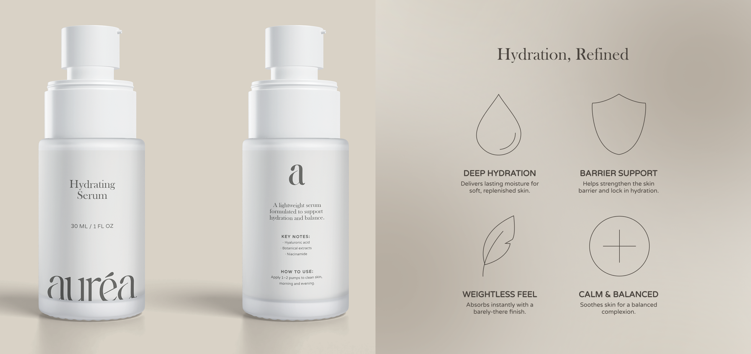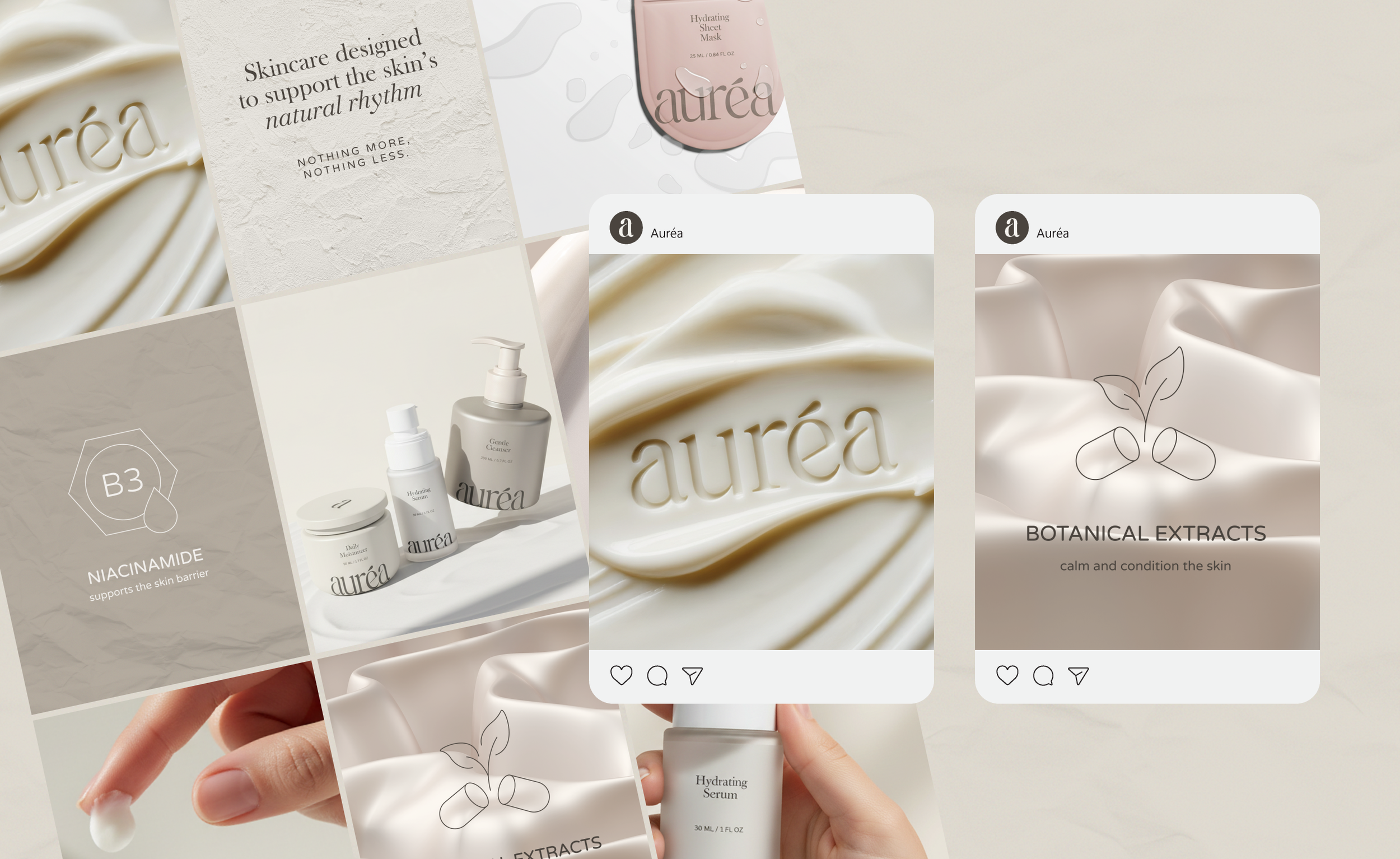 Auréa is a modern skincare brand centered on quiet luxury and intentional daily rituals. Designed with restraint and clarity, the brand focuses on thoughtful formulations and a refined visual system that allows simplicity, materiality, and typography to lead.
